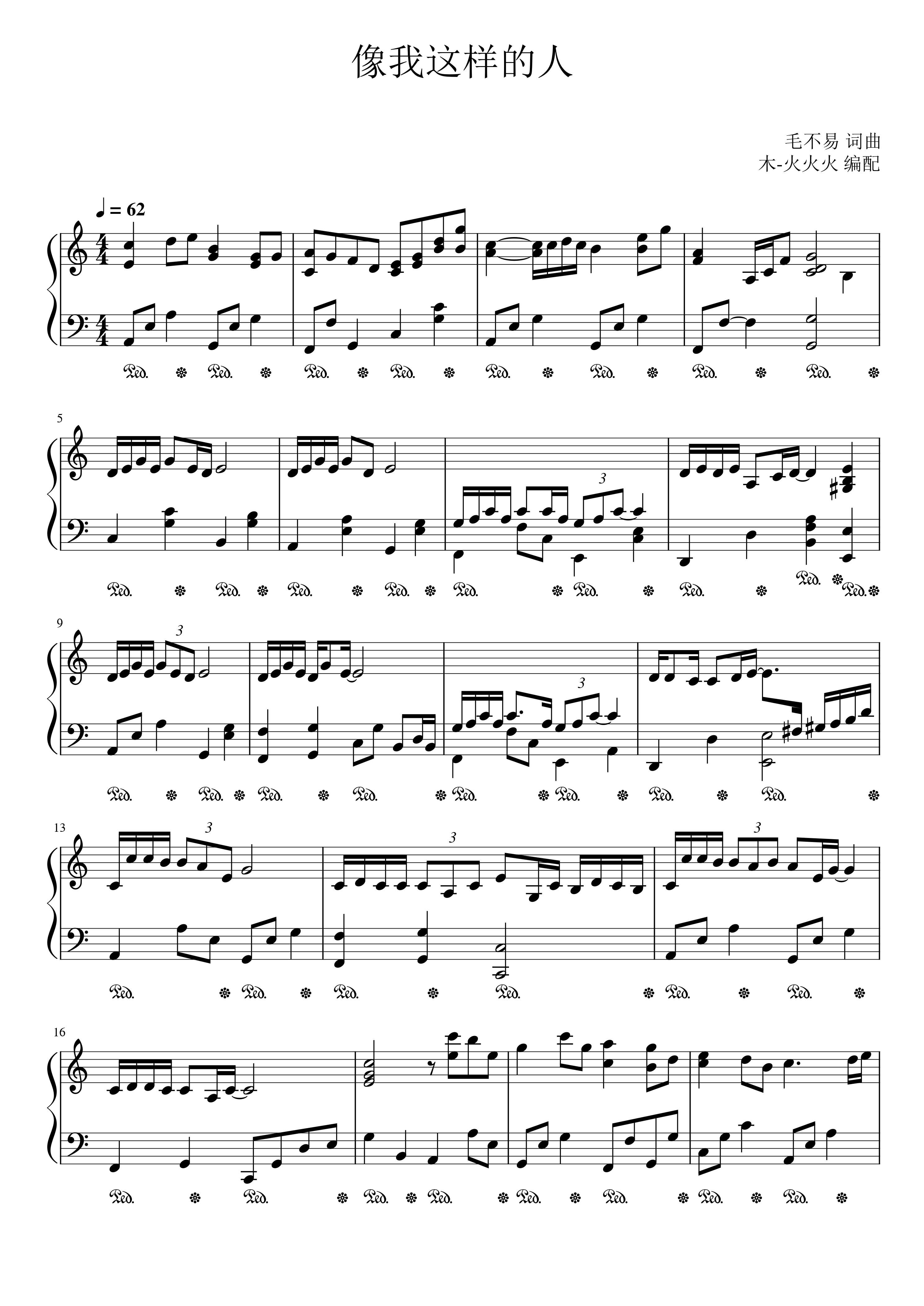 像我这样的人 毛不易(专辑《平凡的一天》)钢琴谱-吱吱吱小吱-虫虫