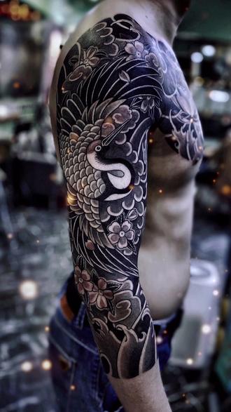 想纹就纹 #就是因为热爱 #日式老传统 鹤 半甲七分袖#本溪纹身 -抖