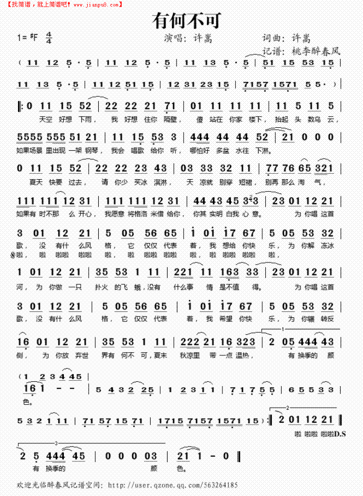 谁有有何不可的钢琴简谱,是数字的那种
