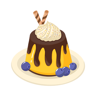 布丁甜品卡通西点免抠矢量图手绘蜡笔风美食甜点焦糖布丁卡通可爱可