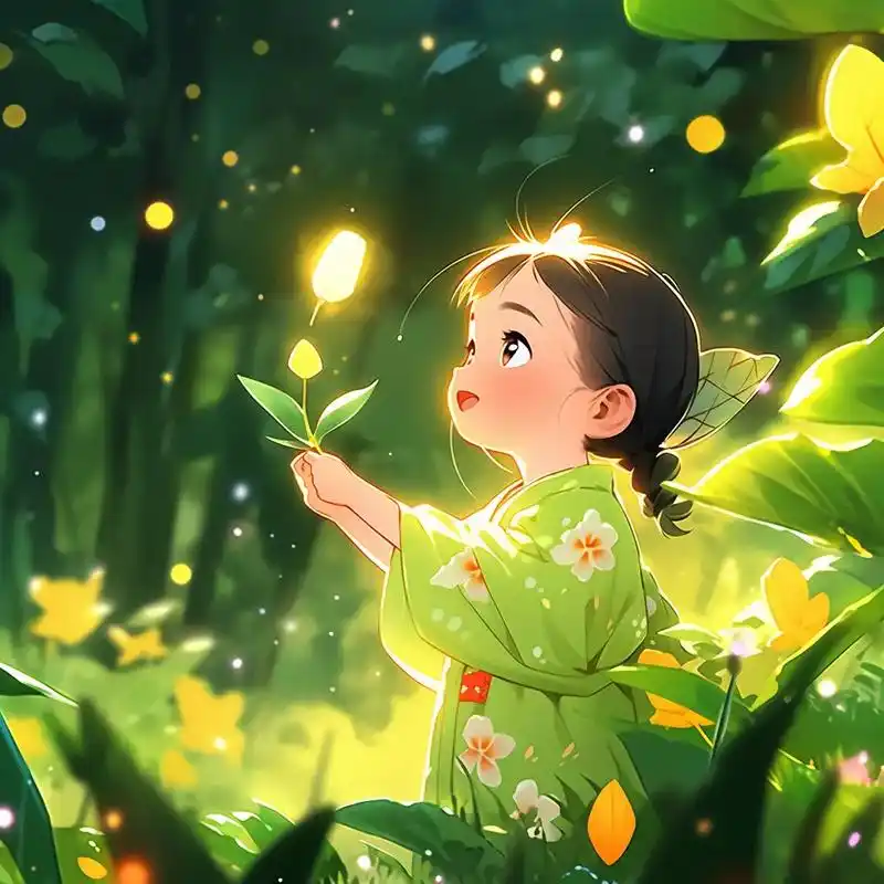 al插画生成关键字:可爱的小女孩在夏天成长.明亮的绿色和浅黄 - 抖音