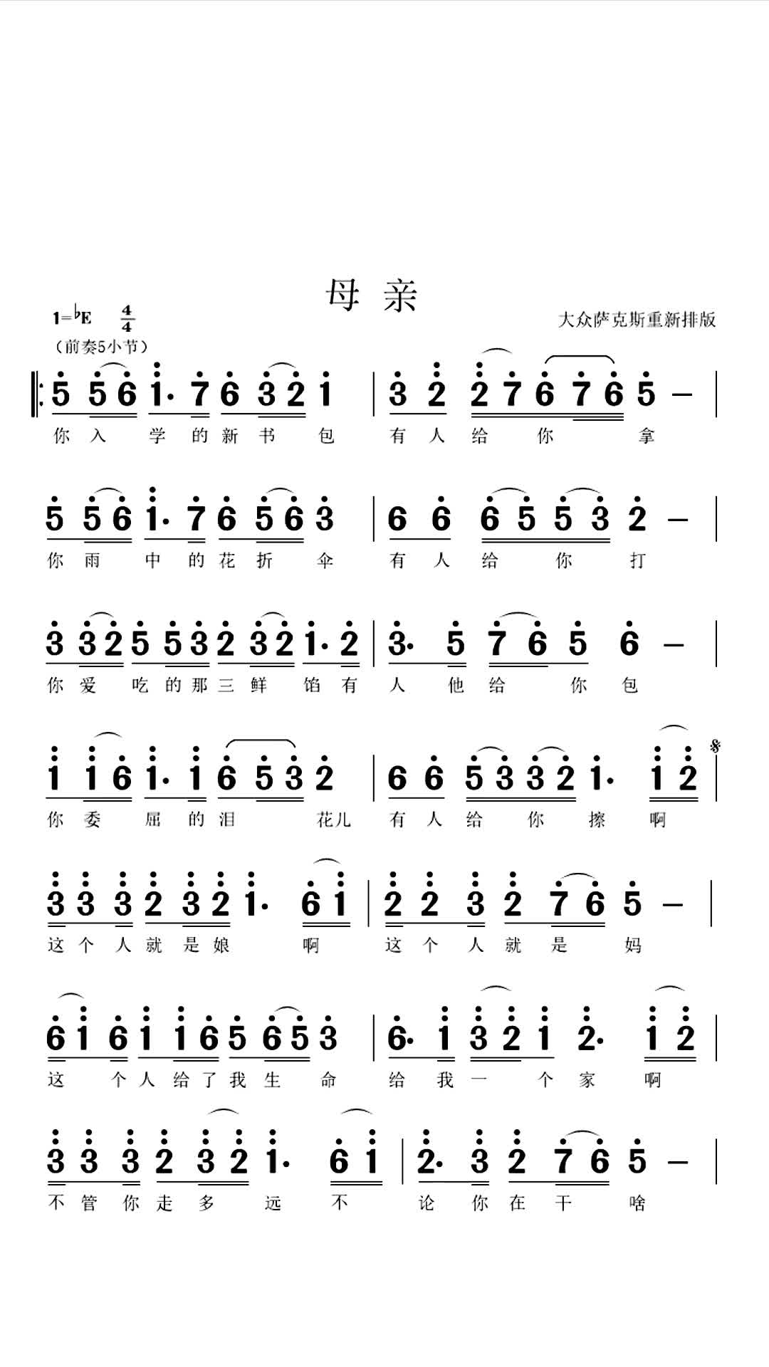 萨克斯演奏 《母亲》中音萨克斯降e调演奏动态曲谱版喜欢的萨友请收藏