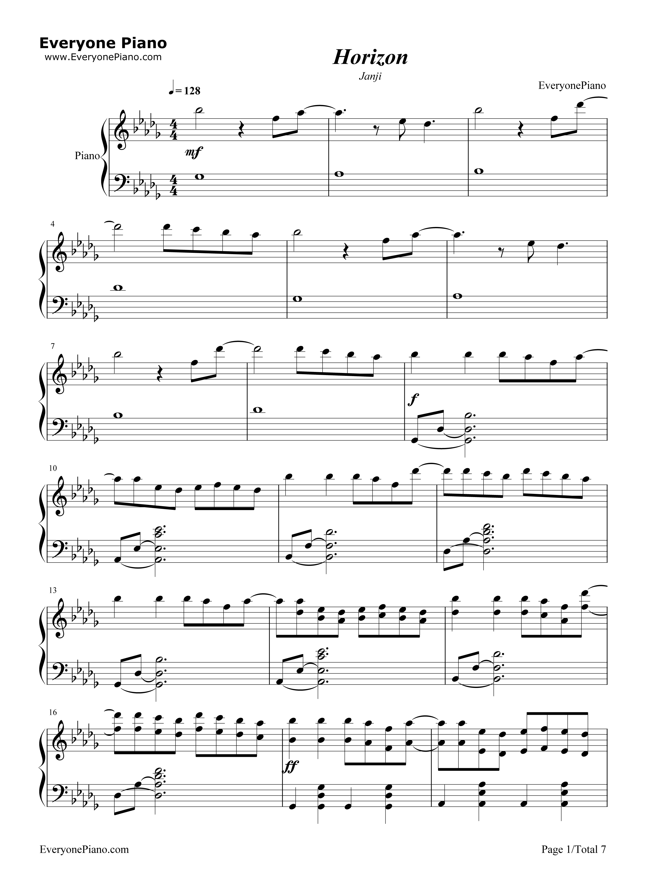 horizon-简单好听版-钢琴谱文件(五线谱,双手简谱,数字谱,midi,pdf)
