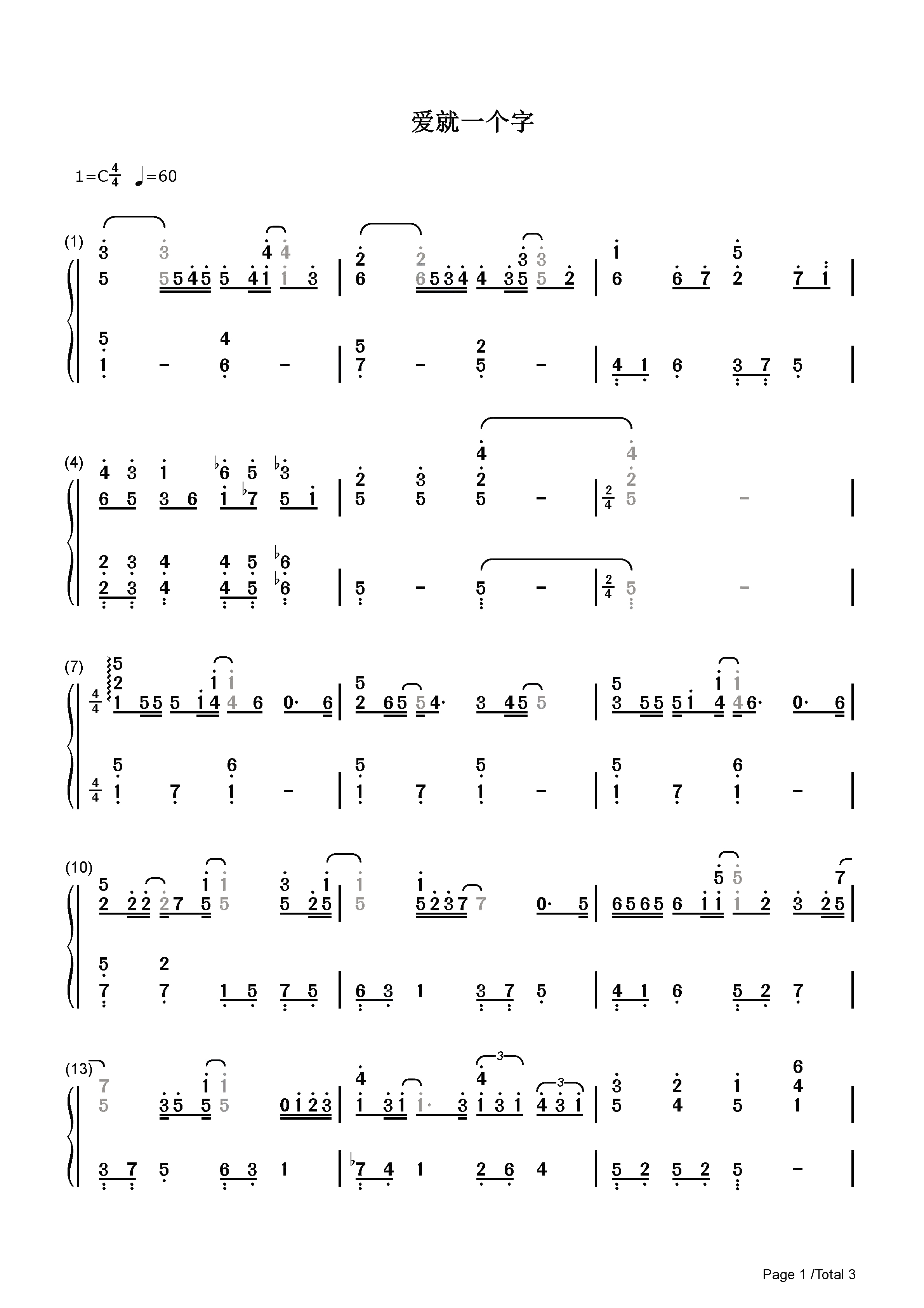 爱就一个字_歌谱简谱_哆来咪123曲谱网
