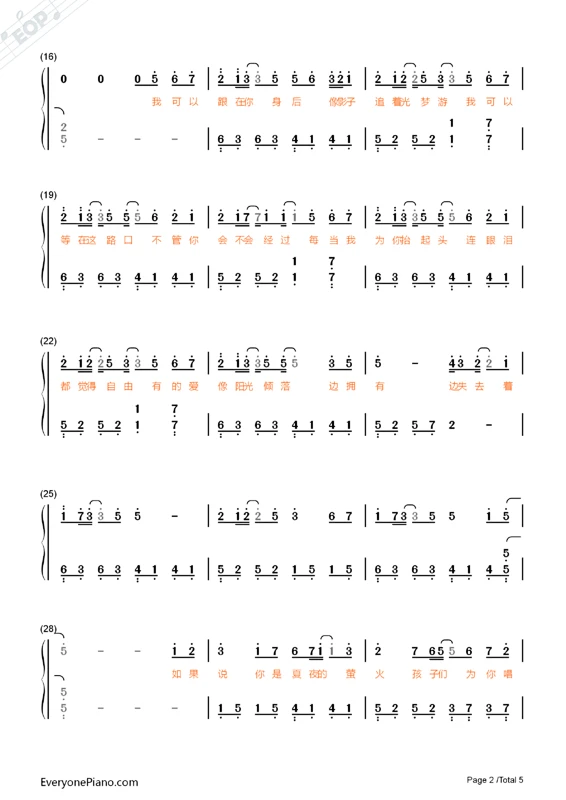 追光者简谱-岑宁儿演唱-电视剧《夏至未至》插曲2