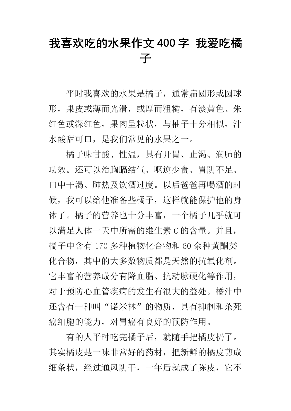 我喜欢吃的水果作文400字 我爱吃橘子.docx