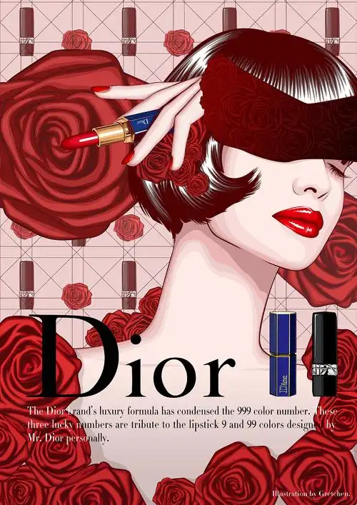 2019青春答卷# 迪奥口红经典色号广告商业插画设计>