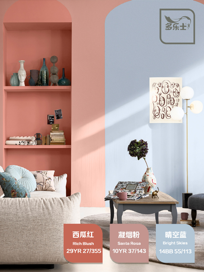 多乐士2023年度色彩##晴空蓝##粉色装修##凝烟粉##初夏配色##家居配色