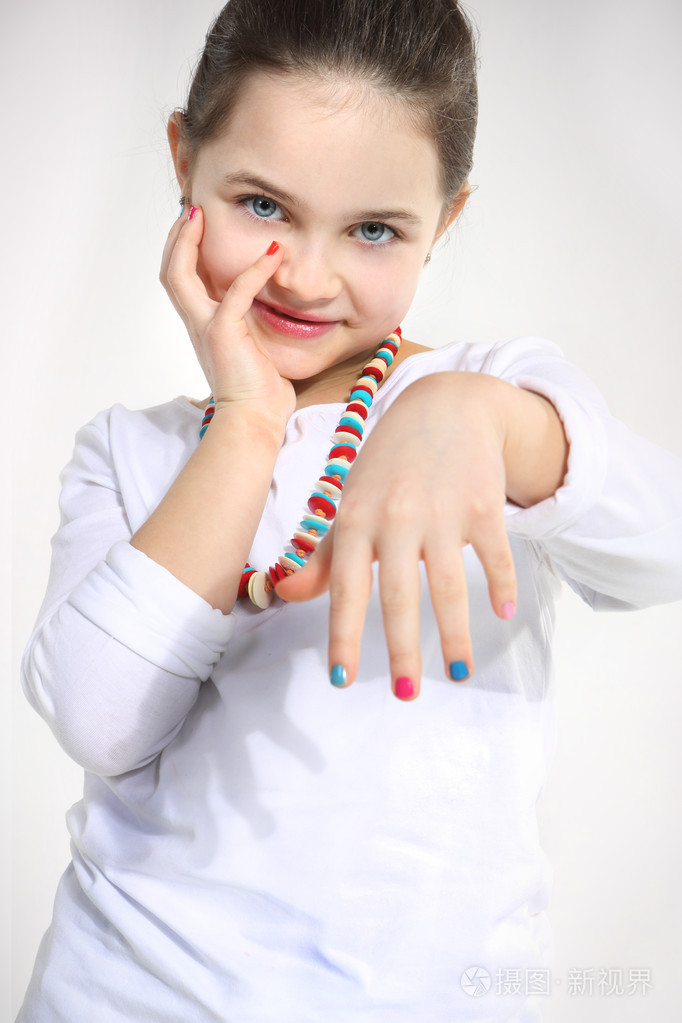 外国小女孩涂指甲图片
