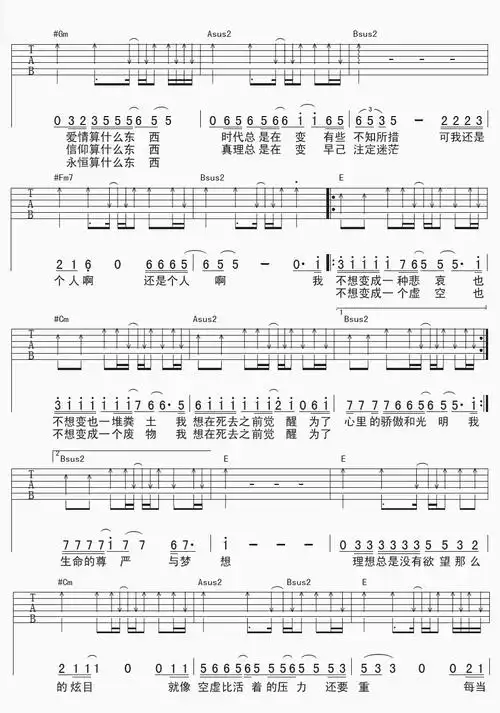 觉醒 吉他谱_吉他曲谱-明明简谱网