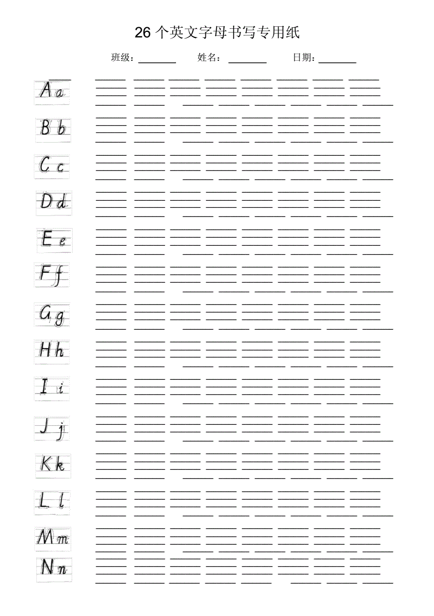 26个英文字母书写练习专用纸