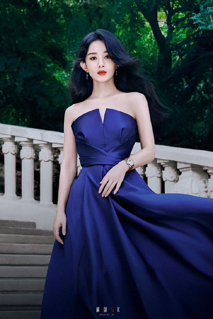 赵丽颖蓝色抹胸长裙写真图集
