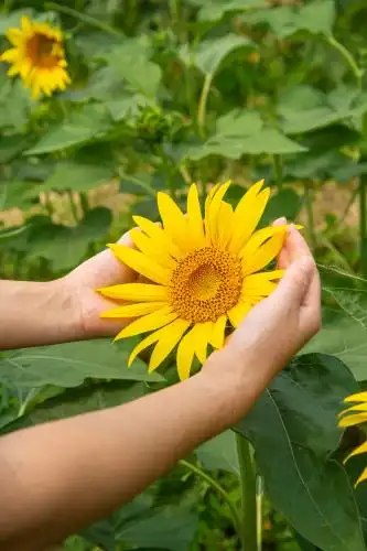 手捧向日葵女孩图片