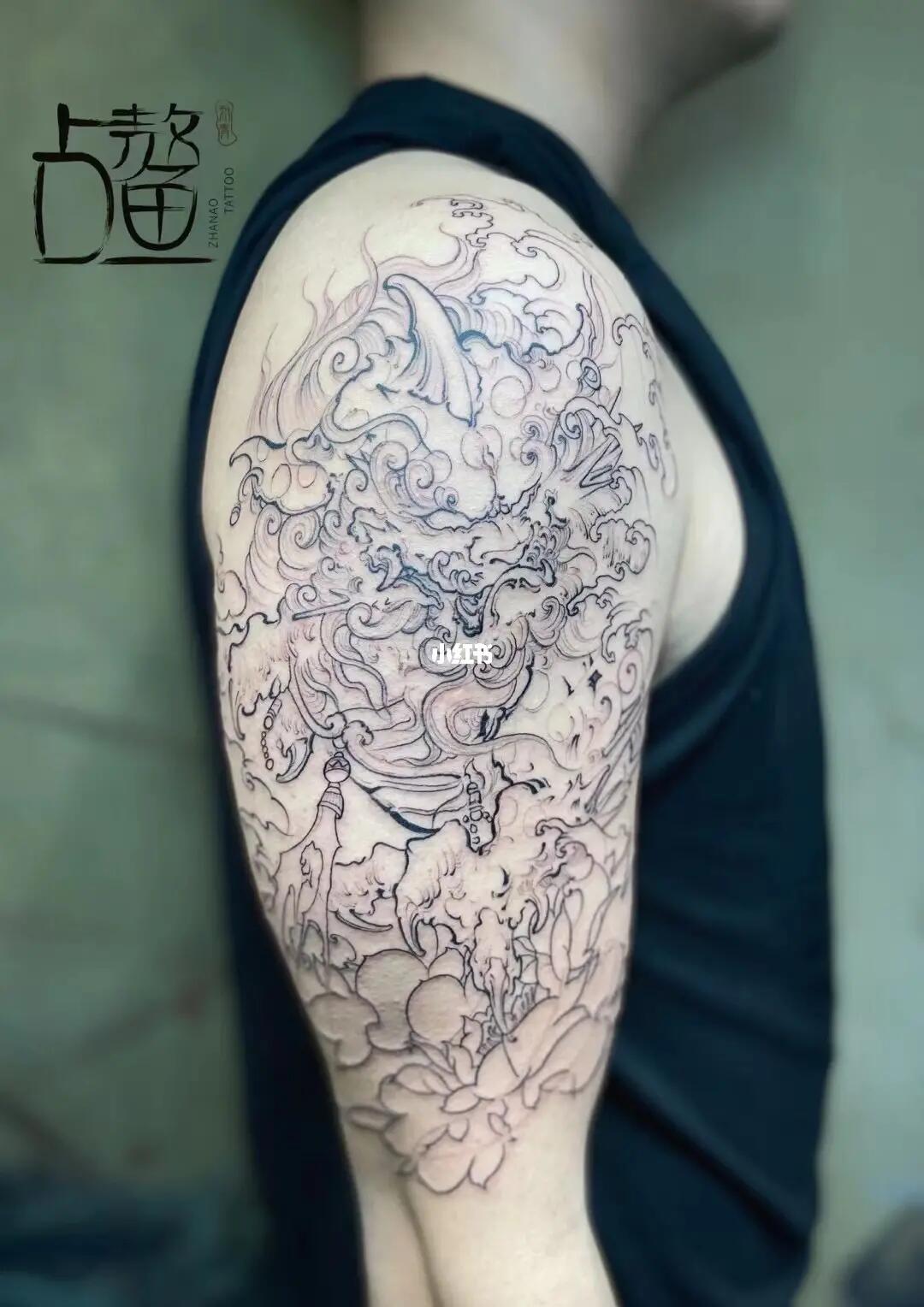 国风 #纹身遮盖 #纹身也清新 #纹身手稿 #唐狮纹身