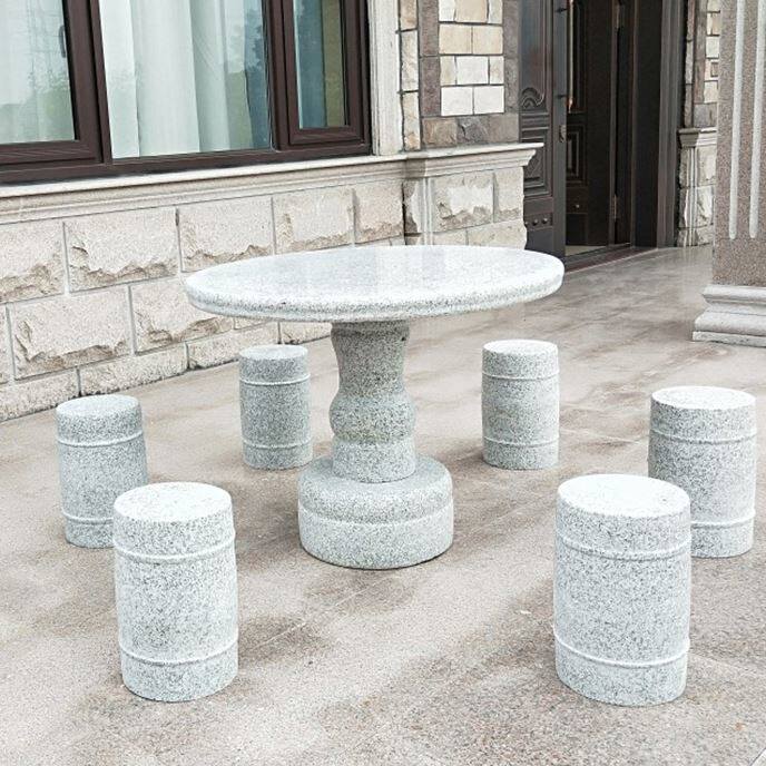 庭院天然石桌石凳庭院花岗岩石雕摆件石头圆桌一桌四凳直径80cm