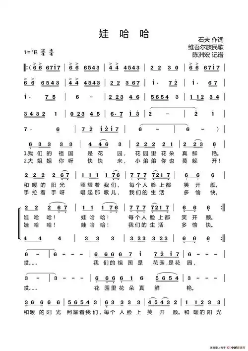 娃哈哈(新疆民歌 石夫记谱)简谱-少儿曲谱-爱曲谱网