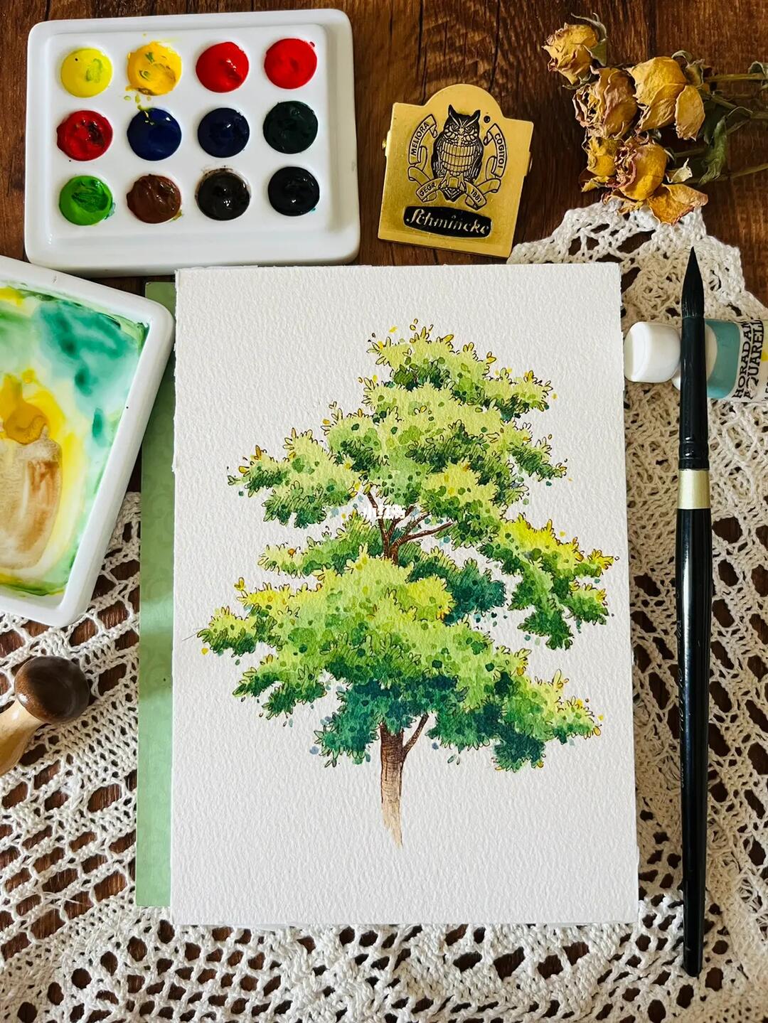 一棵树钢笔淡彩临摹