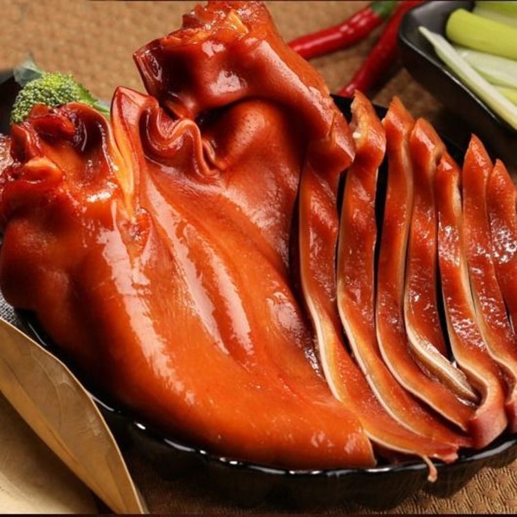 传统熏制的猪耳朵细腻紧致的口感,熏制出来的柴木香气,闪耀着诱人的红