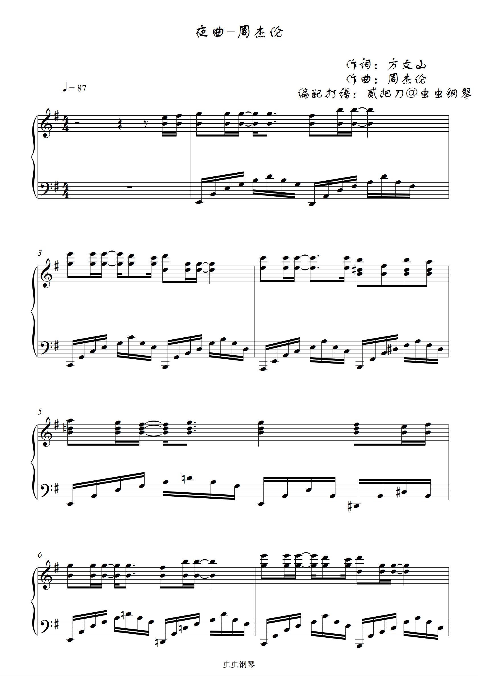 夜曲钢琴谱-周杰伦-c调-虫虫钢琴