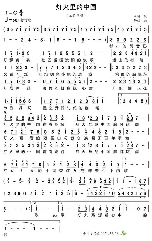 灯火里的中国(央视2021年春晚歌曲)简谱_流行简谱_zzmao简谱网