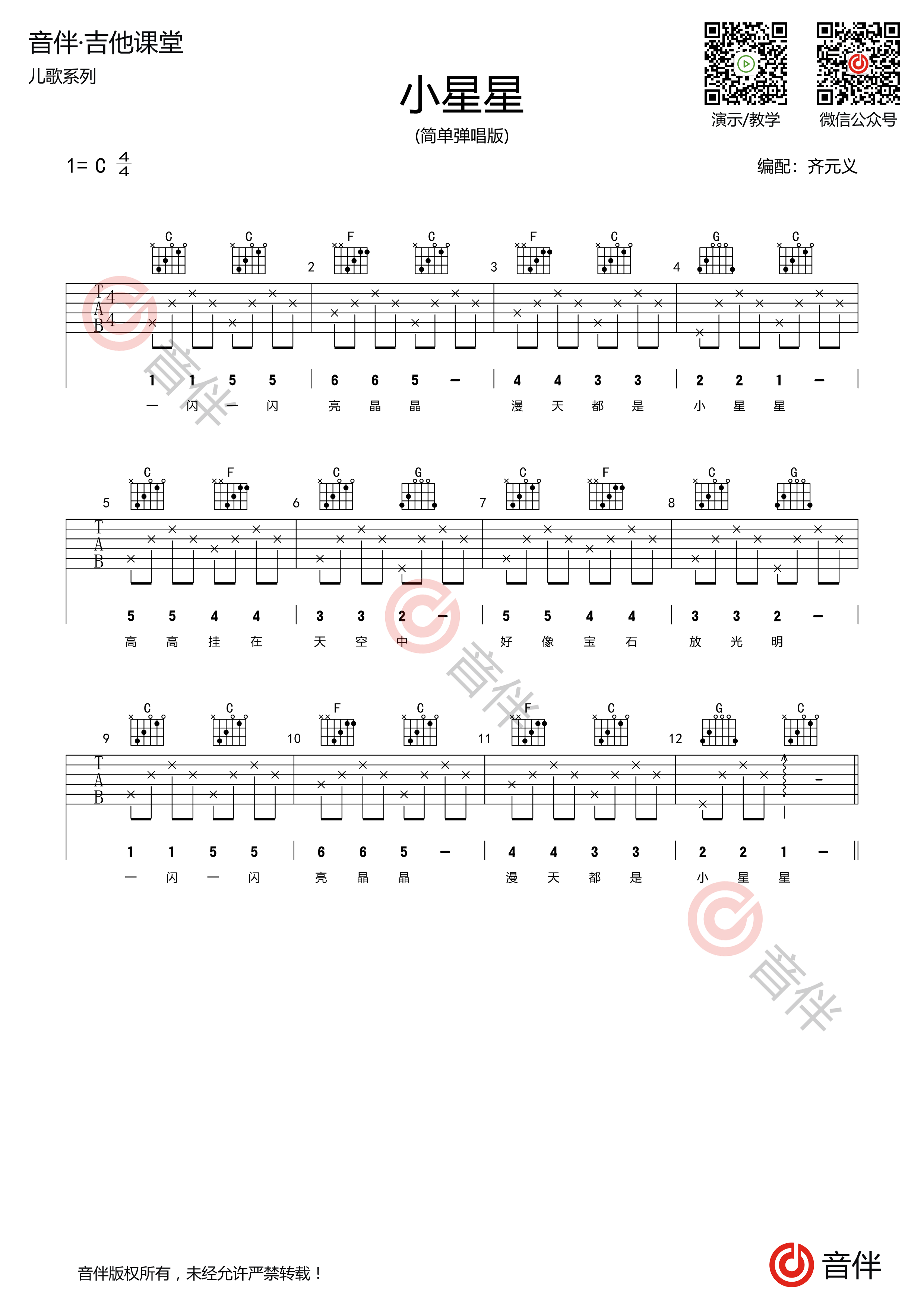 小星星吉他谱c调超级简单版新手弹唱练习曲