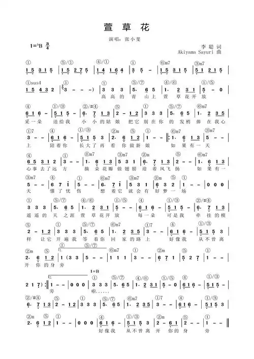 《萱草花》简谱 《萱草花》是由akiyama sayuri作曲,李聪作词张小斐