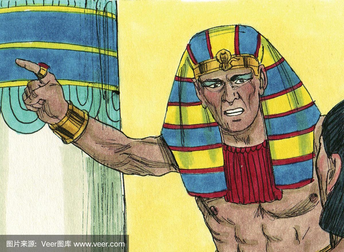 摩西从逾越节的故事和埃及金字塔景观.矢量图卡