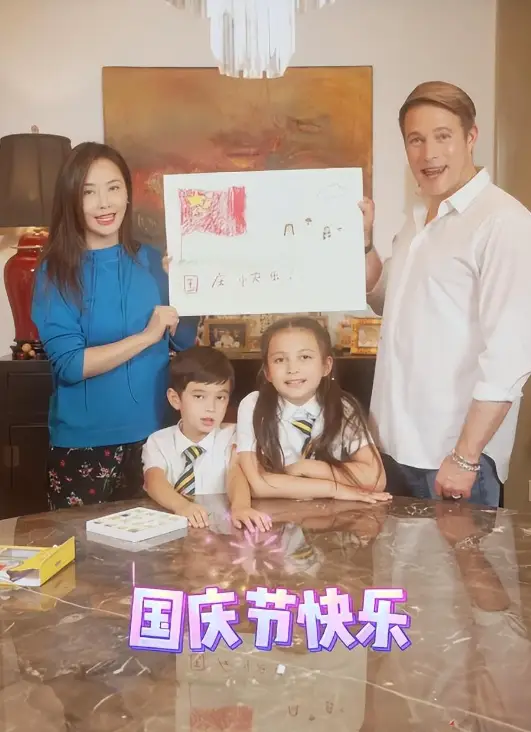 马雅舒9岁混血女儿漂亮,外国老公教孩子画红旗,公开儿女的国籍
