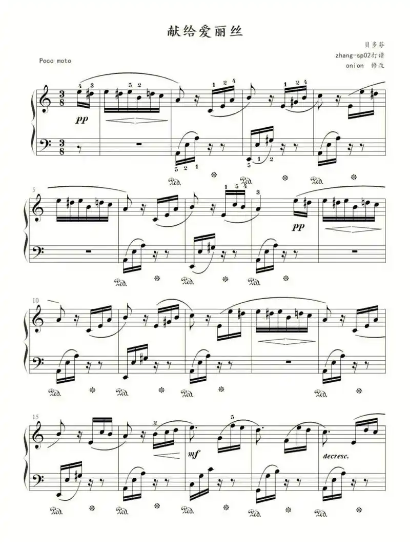 致爱丽丝五线谱 - 抖音