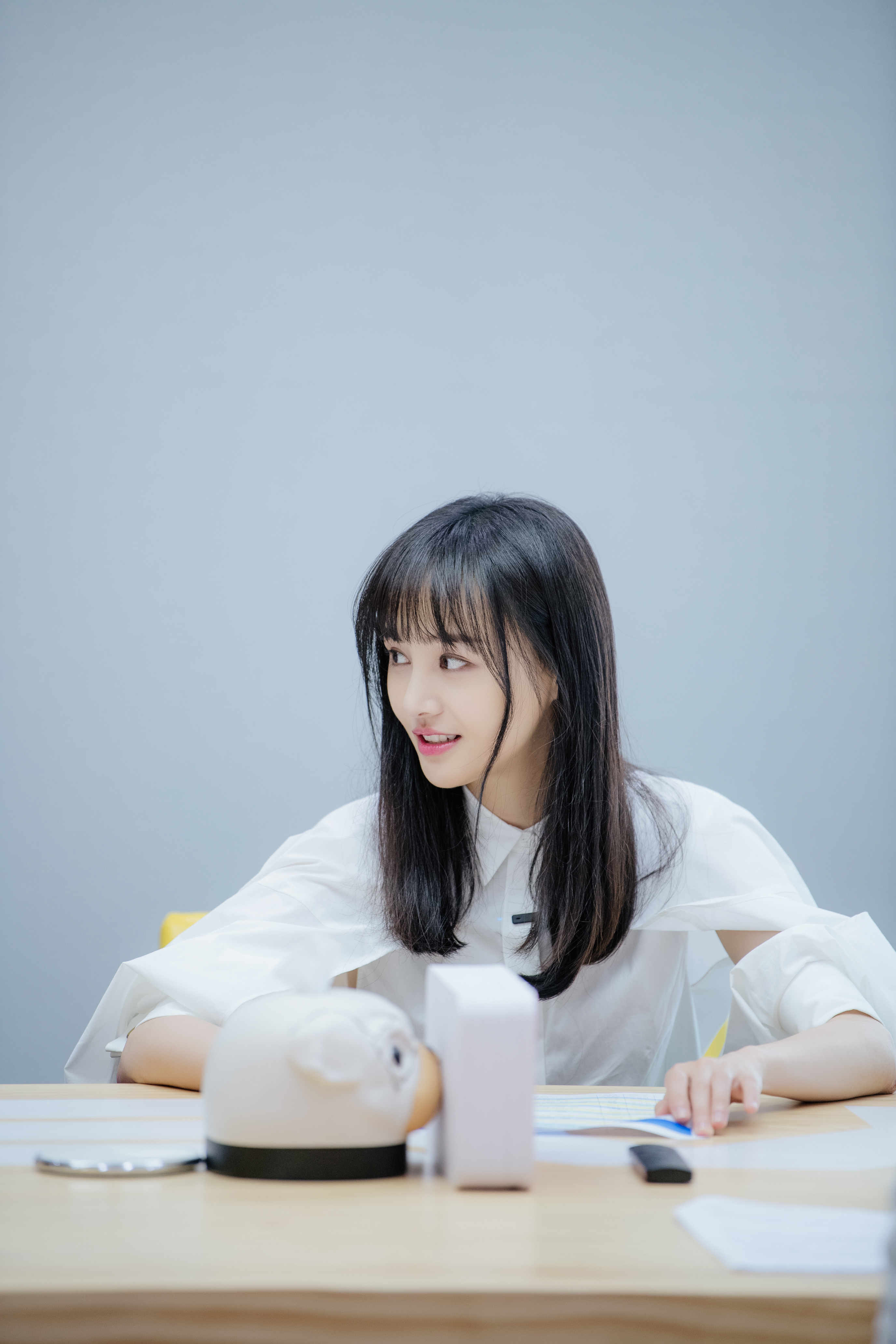 郑爽又有新发型了,齐刘海 长发,白色衬衫加灰色西装,知性温柔又不失