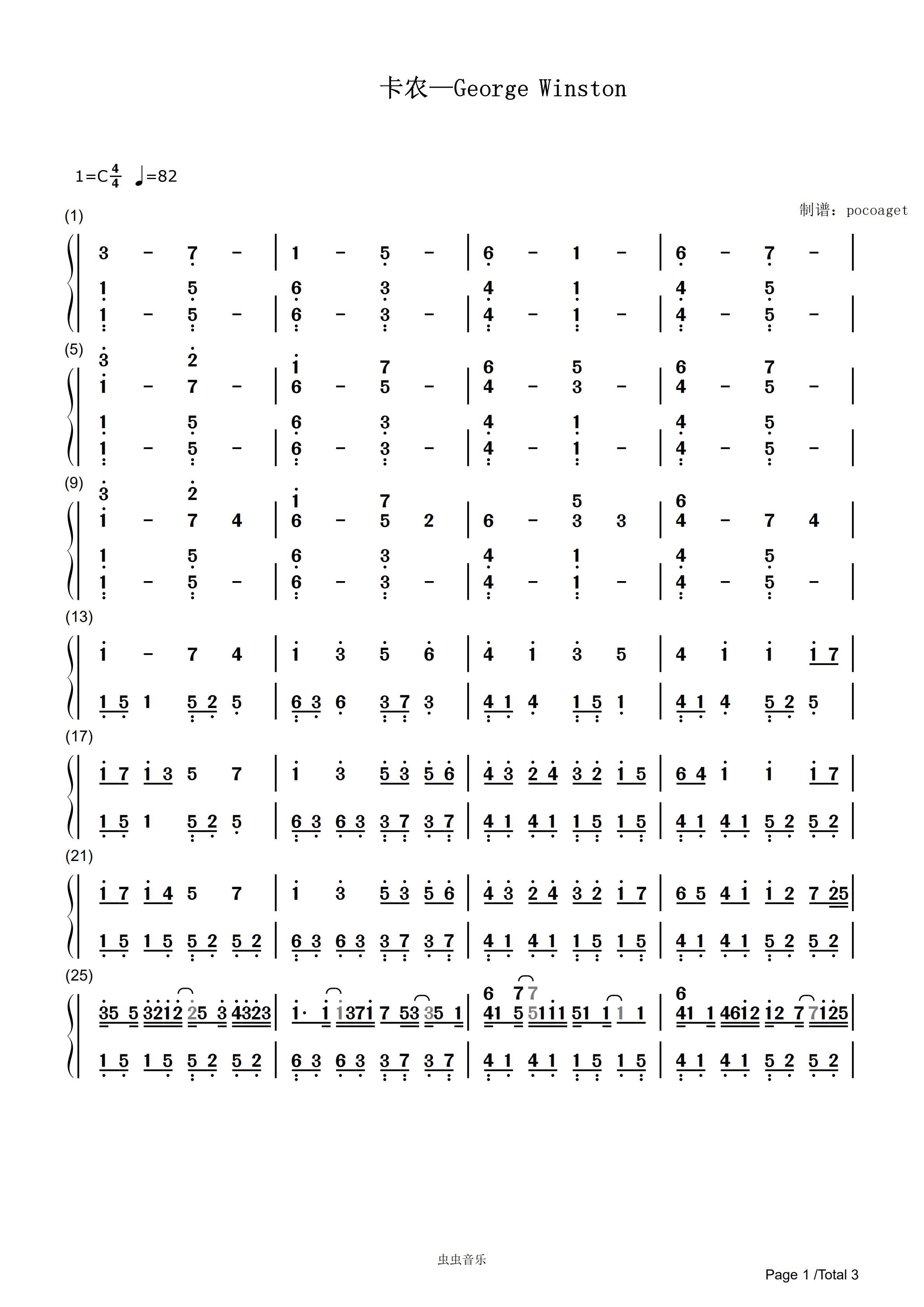 卡农georgewinston简谱根据原谱制谱稍改更易上手