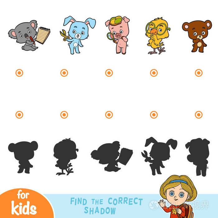 为孩子找到合适的影子.动物集合