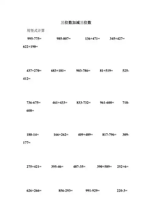三位数加减三位数的竖式