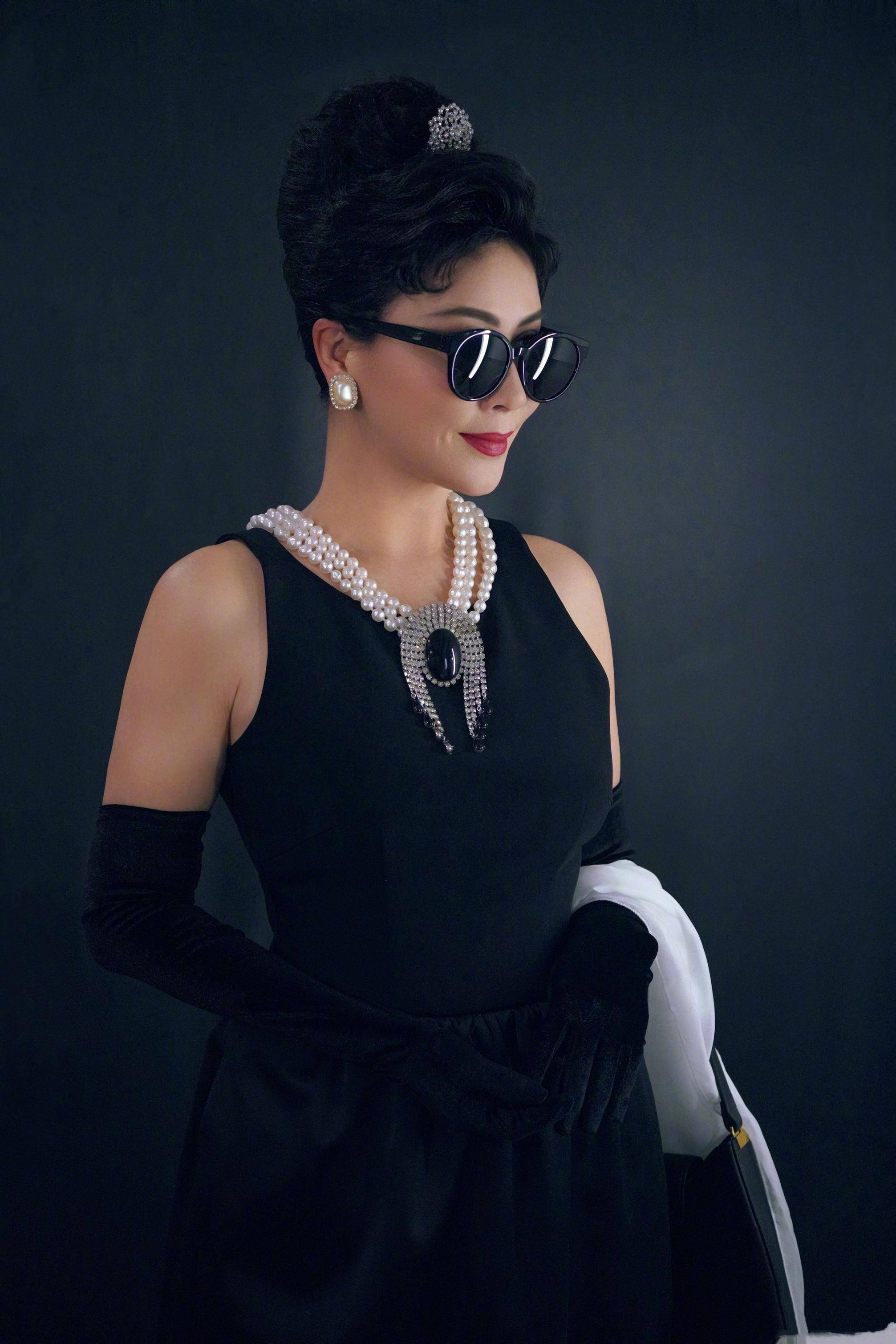 刘嘉玲哪像年过半百的人穿赫本风小黑裙戴珍珠项链名媛范十足