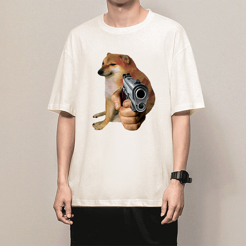 沙雕废柴犬cheem短袖t恤周边斗笠废柴狗cheems猎杀时刻衣服抖纯棉白色