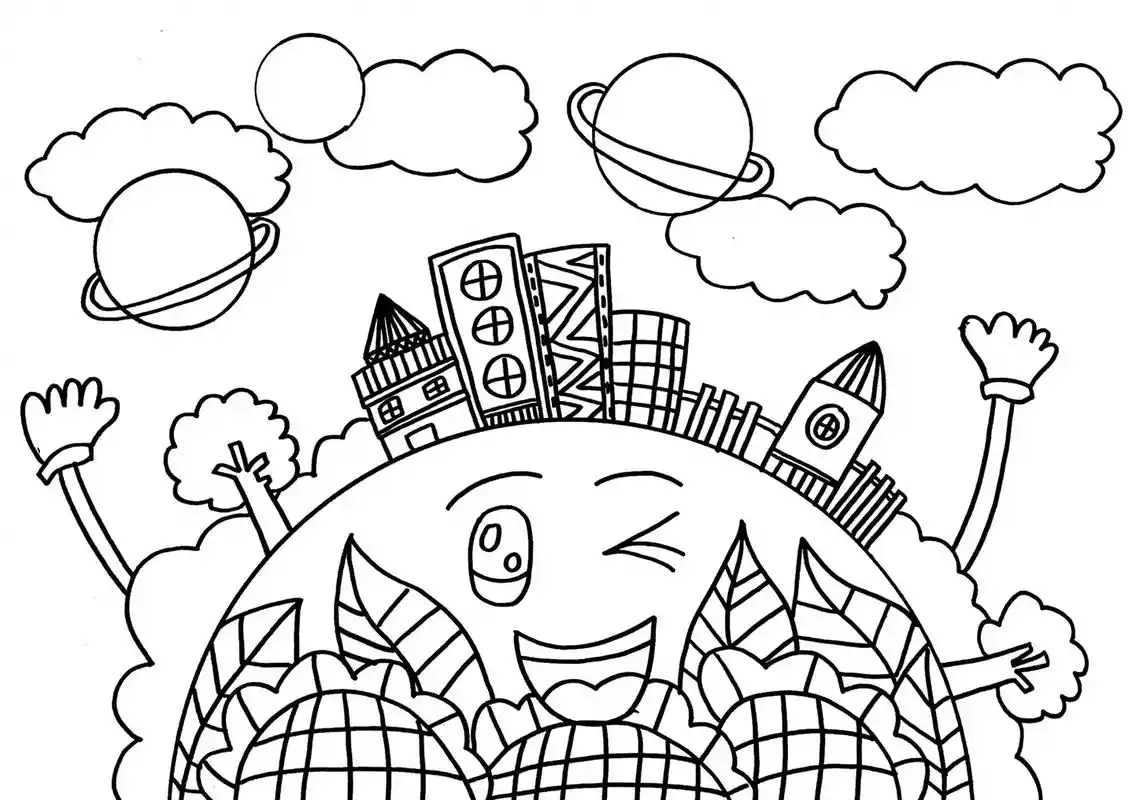 保护地球绘画 绿色家园儿童画 植树节创意画 爱护地球 保护环 - 抖音