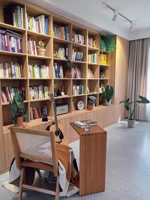 客厅书房一体设计整墙书柜定制客厅满墙书柜定制实木书柜整面墙