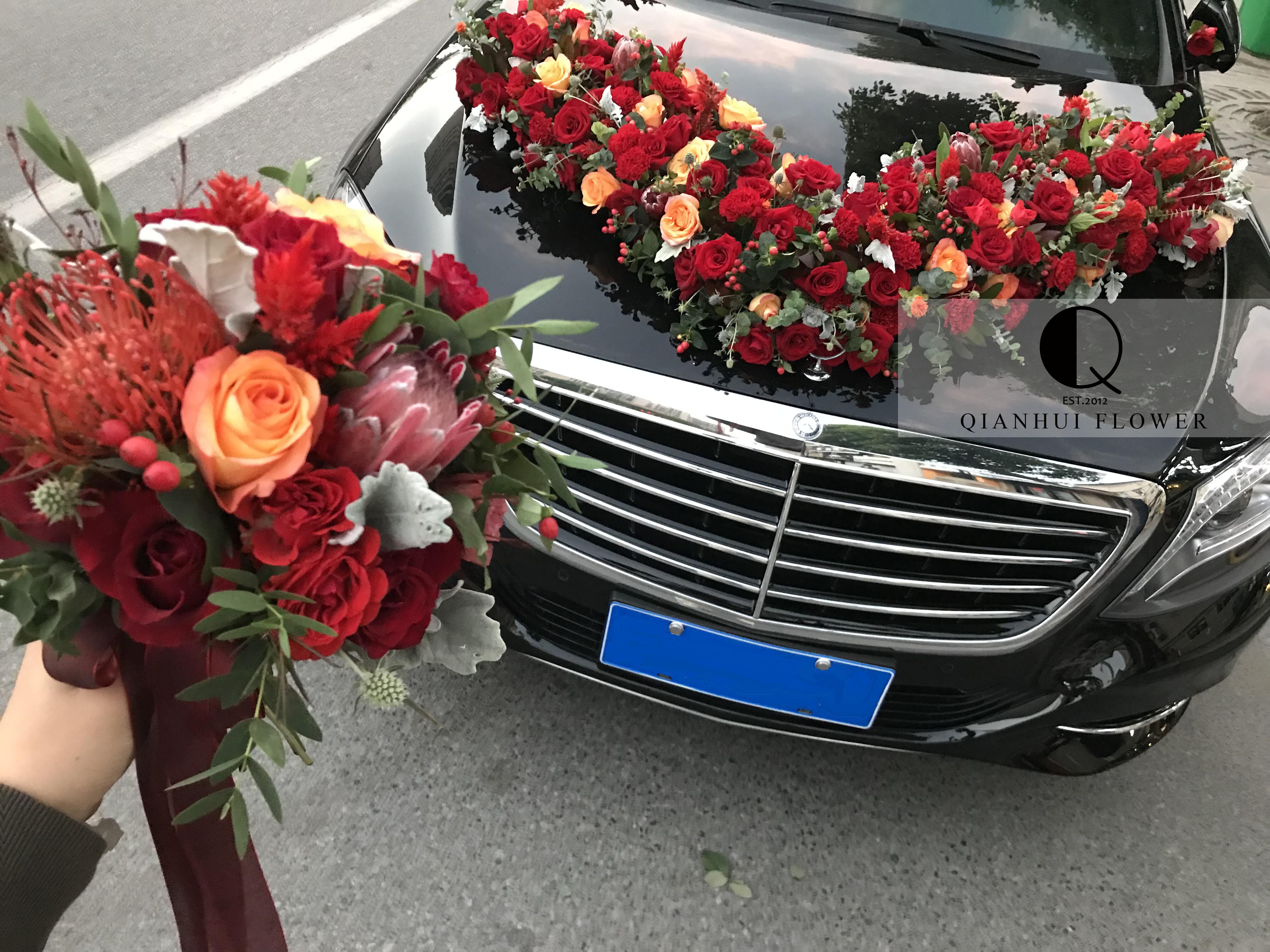 新郎新娘结婚接亲主婚车鲜花装饰搭配手捧花婚车花车花饰套餐结婚新人