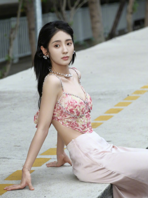 邢菲七夕营业照,白色吊带背心搭配牛仔短裤外搭蓝色格子衬衫,再加上