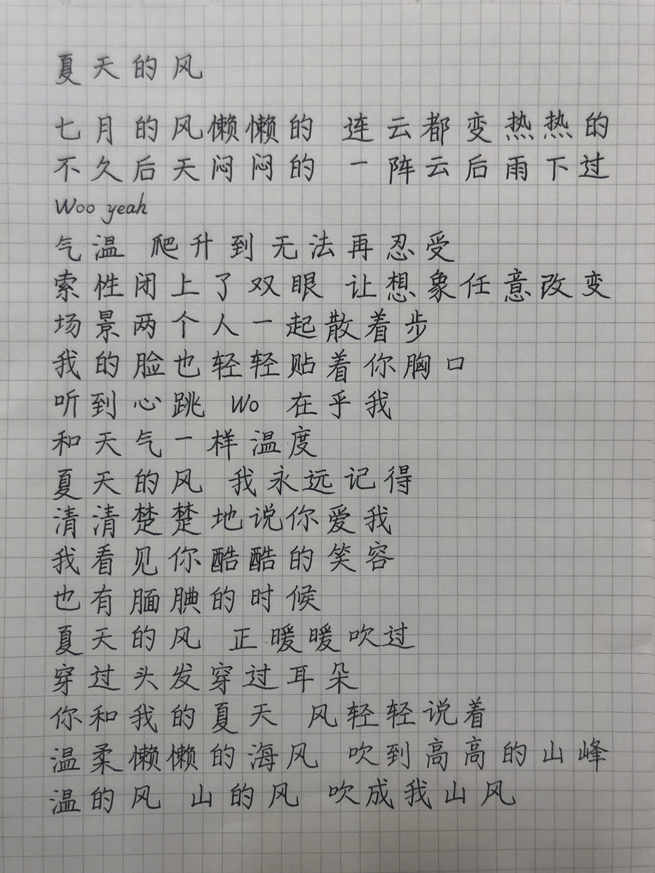 夏天的风歌词图片