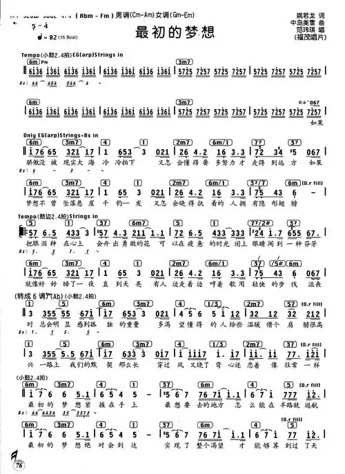 最初的梦想 范玮琪_歌谱歌词_曲谱资料