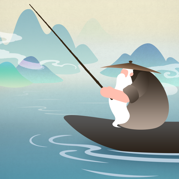 渔翁钓鱼图案创意精雕乙烯基自粘墙贴 可定制尺寸颜色