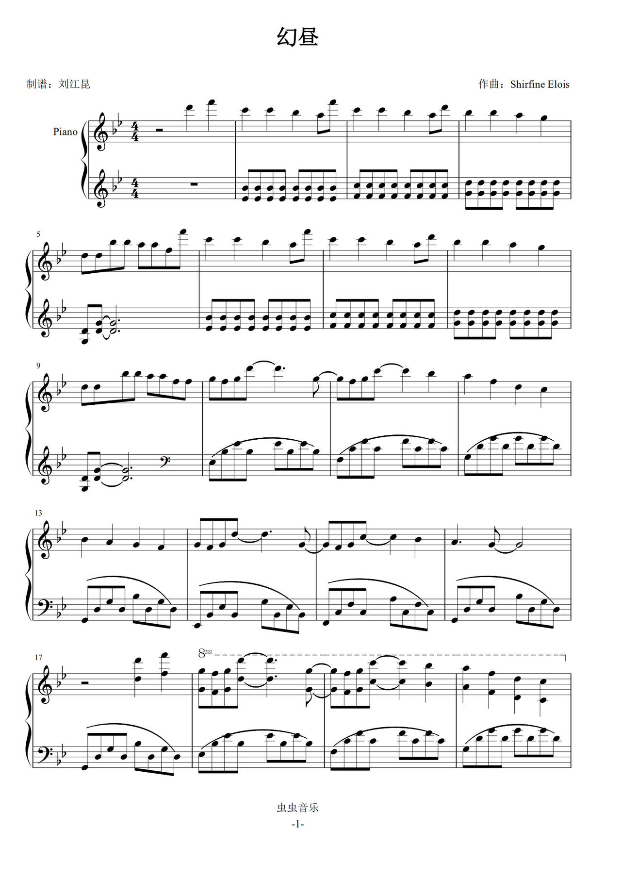 幻昼简单钢琴谱乐谱简谱-虫虫乐谱