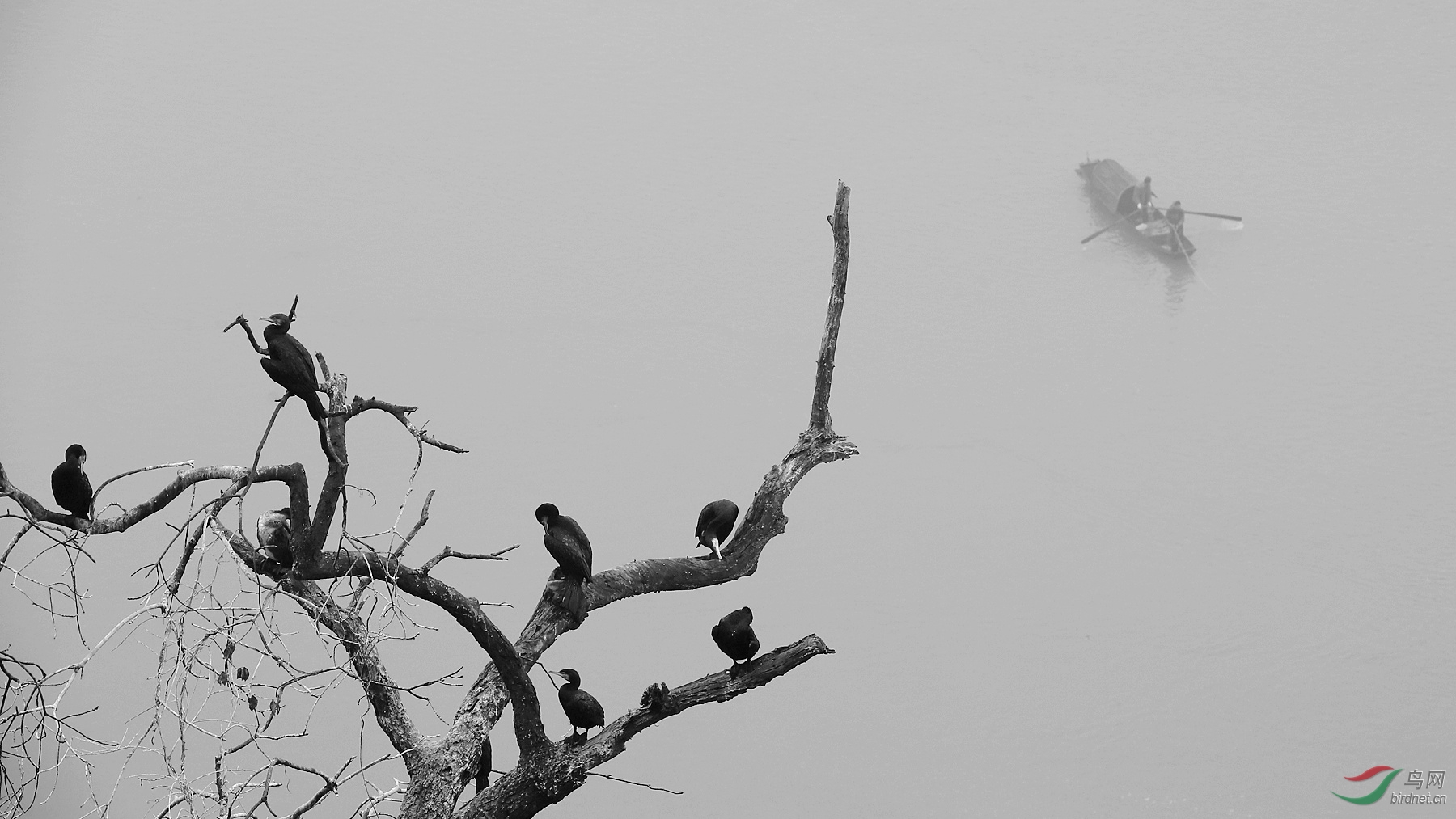 黑白意境片-枯树寒鸦,渔舟暮归