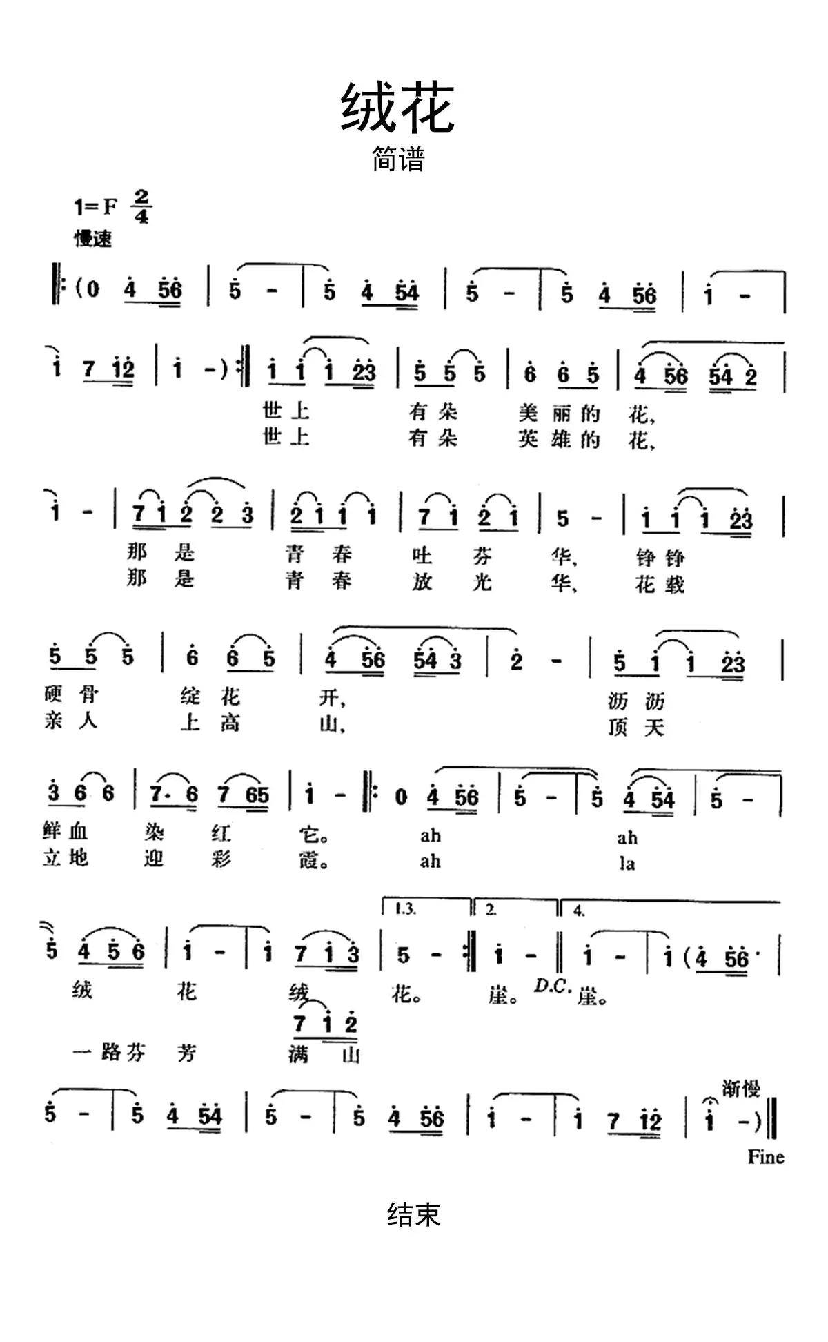 绒花简谱乐谱