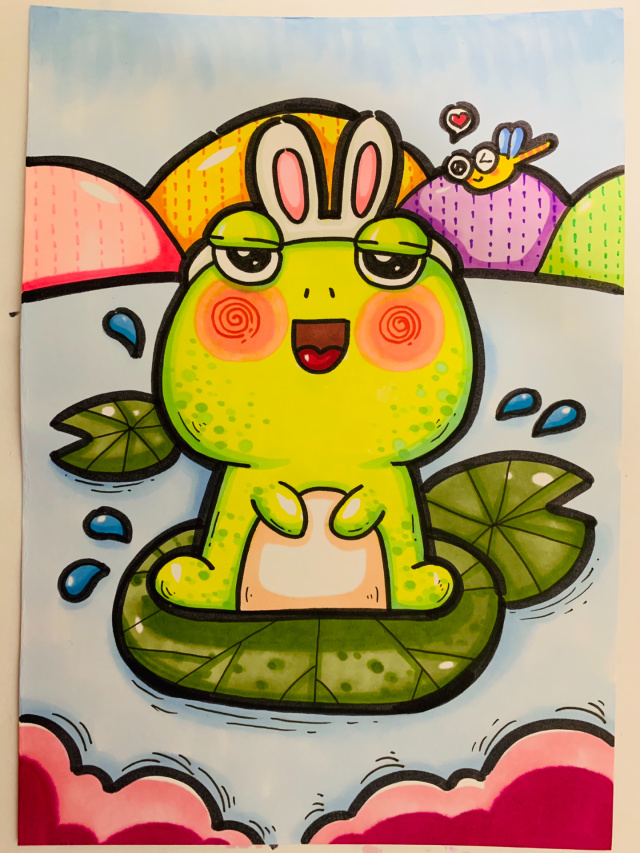 快乐的小青蛙 马克笔画 儿童画