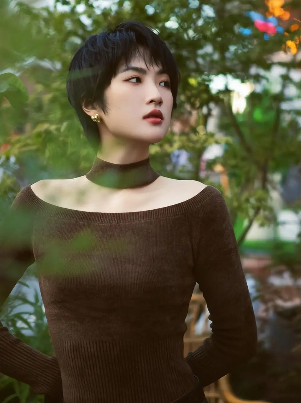 姚安娜去爬山晒纪念照,她现在每次出门都要化妆了,眼睛涂得有点像烟熏