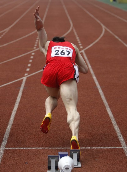 四个,女性,运动员,竞技,赛道,离开,起跑,后视图