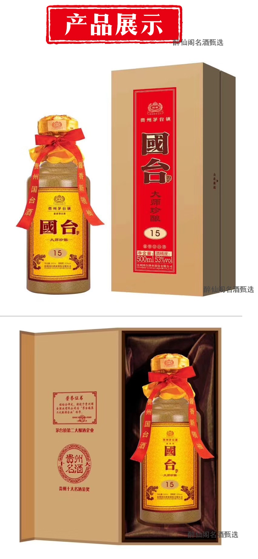 国台酒国台大师珍酿15酱香型53度500ml*1瓶口粮酒白酒_历史最低价格