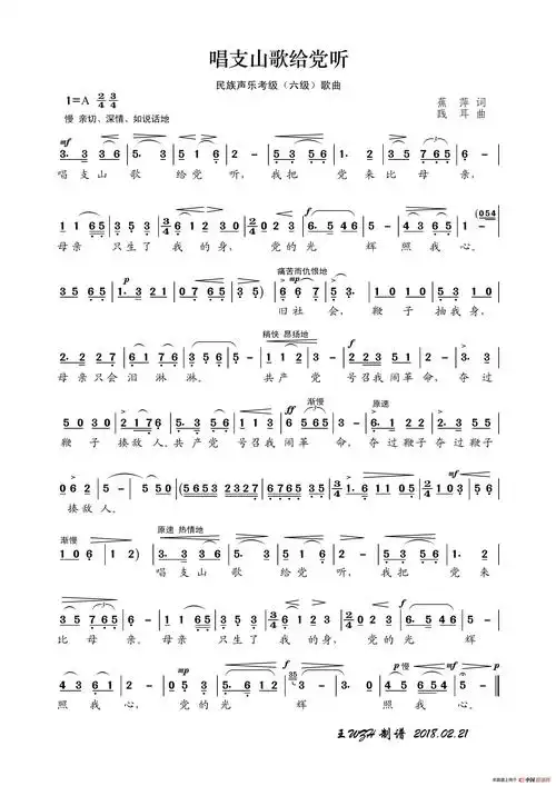 民族声乐考级歌曲:唱支山歌给党听_简谱